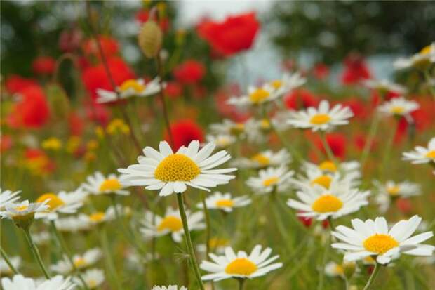 А еще ромашки похожи на удивленные глаза, если в сухой ветреный день выйти на луг и внимательно прислушаться, то можно услышать тихий шорох,- это шорох белых ромашковых ресниц.